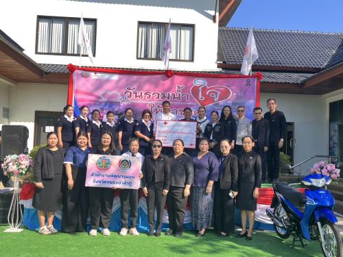 นายดอกดิน ต้อมทอง พัฒนาการจังหวัดหนองบัวลำภู พร้อมด้วยผู้อำนวยการกลุ่มงาน พัฒนาการอำเภอ นักวิชาการพัฒนาชุมชนจังหวัดหนองบัวลำภู คณะกรรมการพัฒนาสตรีจังหวัด เครือข่าย OTOP ระดับจังหวัด และเครือข่ายกองทุนหมู่บ้านชุมชนเมืองระดับจังหวัด พร้อมใจกันร่วมส่งมอบเงินสดพร้อมสิ่งของบริจาคในกิจกรรมวันรวมน้ำใจให้กาชาด ประจำปี พ.ศ.2569 เพื่อนำไปใช้ในกิจกรรมของเหล่ากาชาดที่ประสบความเดือดร้อน โดยรวมยอดบริจาคทั้งสิ้น 15,500 บาท (หนึ่งหมื่นห้าพันห้าร้อยบาทถ้วน)