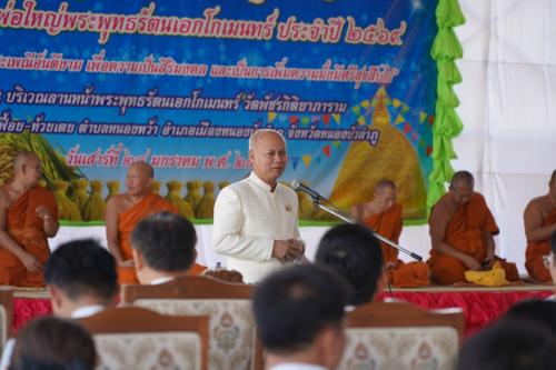 นายสุรศักดิ์ อักษรกุล ผู้ว่าราชการจังหวัดหนองบัวลำภู ให้เกียรติเป็นประธาน ในงานประเพณีบุญคูณลานสู่ขวัญข้าว และไหว้หลวงพ่อใหญ่พระพุทธรัตนเอกโกเมนทร์ ประจำปี 2569 โดยได้รับความเมตตาจาก พระเทพวัชรวิสุทธิ์ เจ้าคณะจังหวัดหนองบัวลำภู เป็นประธานฝ่ายสงฆ์ และ พระวุฒิสารโสภณ เจ้าคณะจังหวัดหนองบัวลำภู (ธรรมยุต) เป็นประธานพิธีเจริญพระพุทธมนต์ โดยมีคณะพระสังฆาธิการในเขตปกครองสงฆ์จังหวัดหนองบัวลำภู และพระเถรานุเถระอาคันตุกะจากต่างจังหวัดเข้าร่วมเจริญชัยมงคลคาถา เพื่อความเป็นสิริมงคลแก่หัวหน้าส่วนราชการ เกษตรกรและพุทธศาสนิกชนผู้เข้าร่วมงาน