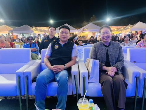 นายดอกดิน ต้อมทอง พัฒนาการจังหวัดหนองบัวลำภู พร้อมด้วยหัวหน้าส่วนราชการระดับจังหวัด และเจ้าหน้าที่สำนักงานพัฒนาชุมชนจังหวัดหนองบัวลำภู ร่วมชมและให้กำลังใจการแสดงดนตรีของกลุ่มเด็กและเยาวชนจาก โรงเรียนหนองบัววิทยายน อำเภอเมืองหนองบัวลำภู จังหวัดหนองบัวลำภู ที่มาสร้างสีสันและความสนุกสนานให้กับผู้เข้าร่วมงาน