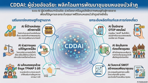 พลิกโฉมการพัฒนาชุมชนหนองบัวลำภู ด้วย CDDAI ผู้ช่วยพัฒนากรอัจฉริยะเพื่อชุมชนเข้มแข็งอย่างยั่งยืน แพลตฟอร์ม AI และข้อมูลเชิงลึกสำหรับพัฒนากร หน่วยงาน และชุมชน