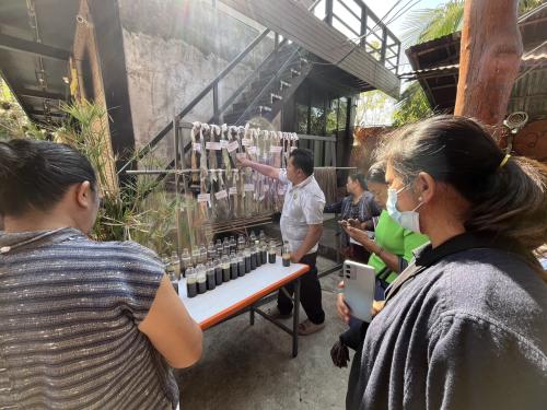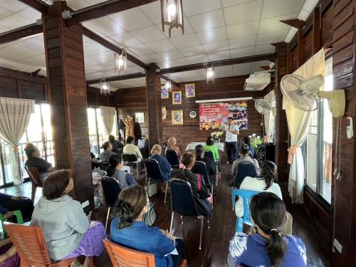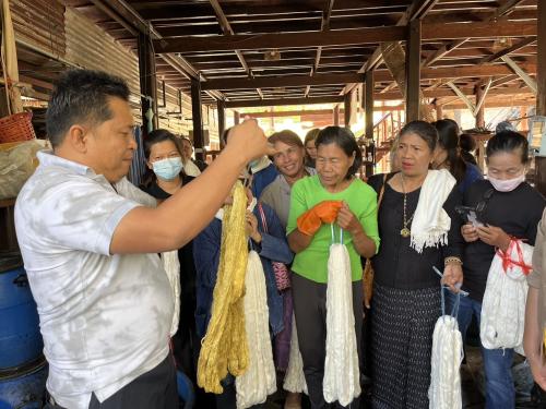สำหรับในวันนี้กิจกรรมประกอบด้วยการบรรยายให้ความรู้เกี่ยวกับการอนุรักษ์สิ่งแวดล้อมผ่านงานผ้าไทย องค์ความรู้เรื่องพืชฉนวนและการสกัดสีธรรมชาติ เพื่อให้ผู้เข้าร่วมสามารถนำความรู้ไปประยุกต์ใช้ในการพัฒนาผลิตภัณฑ์ชุมชนและสร้างรายได้ โดยมีนายกิตติพันธ์ สุทธิสา ผู้อำนวยการวิชชาลัยผ้าทอหนองบัวลำภู (เทวาผ้าไทย) ร่วมเป็นวิทยากร